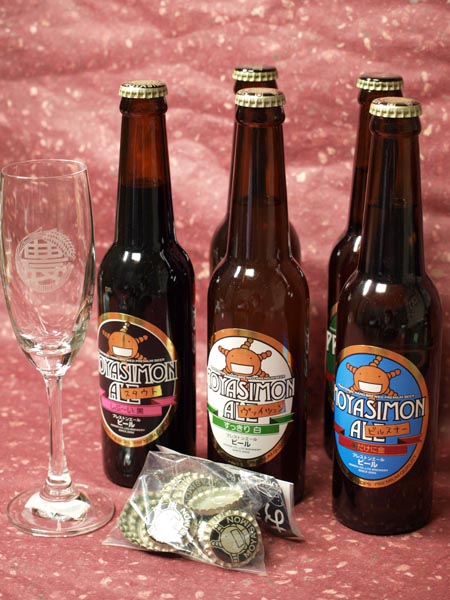 ビール5本と農大マークグラス。あと、おまけのオリゼーがプリント